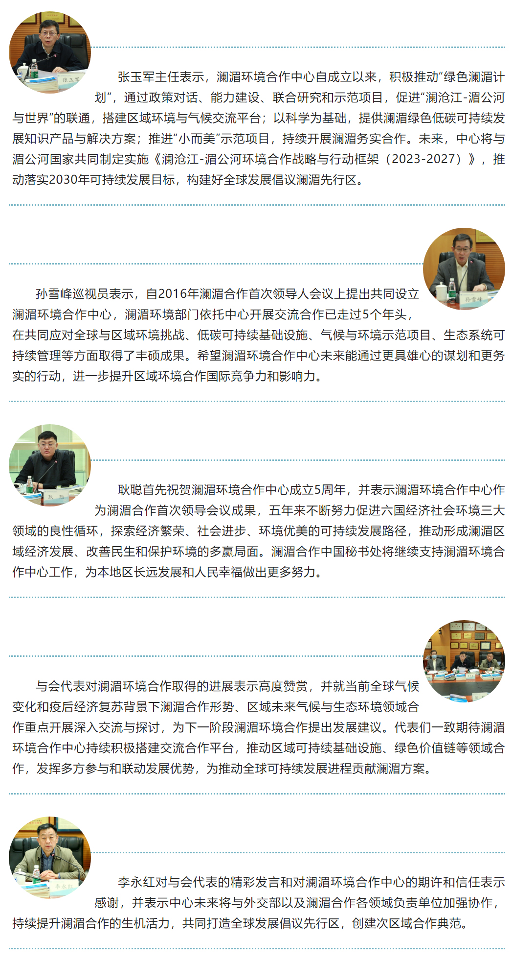 中心合作二处相关负责同志参会,并介绍了澜湄环境合作中心实施的“绿色澜湄计划”一期成果、新一期澜湄环境合作战略与行动框架优先合作领域、合作模式以及助力落实全球发展倡议的具体行动计划。