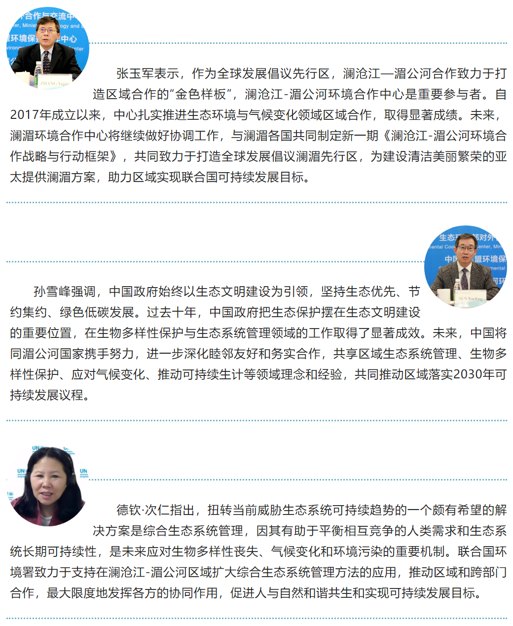 与会代表一致表示生态系统综合管理与可持续生计协同对于澜湄区域生物多样性保护、应对气候变化、减贫、促进性别平等等可持续发展目标实现具有积极推动意义。