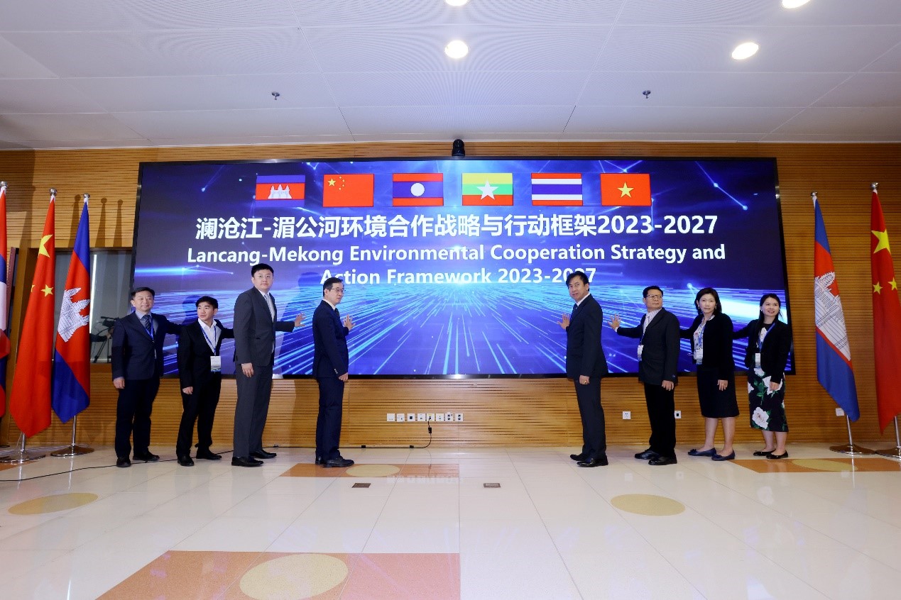 中国生态环境部国际合作司巡视员孙雪峰、澜湄合作中国秘书处代表耿聪、澜沧江-湄公河环境合作中心/中国生态环境部对外合作与交流中心副主任李永红、老挝自然资源与环境部规财司副司长苏克萨蒙·帕塔马沃因(Souksamone Pathammavong)、缅甸自然资源和环境保护部环境保护司副司长昂觉蒙(Aung Kyaw Moe)、柬埔寨环境部代表、泰国自然资源与环境部代表和越南驻华使馆代表共同发布《澜沧江-湄公河环境合作战略与行动框架2023-2027》。