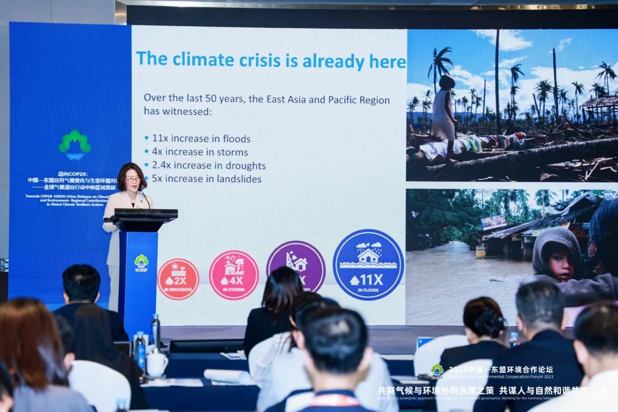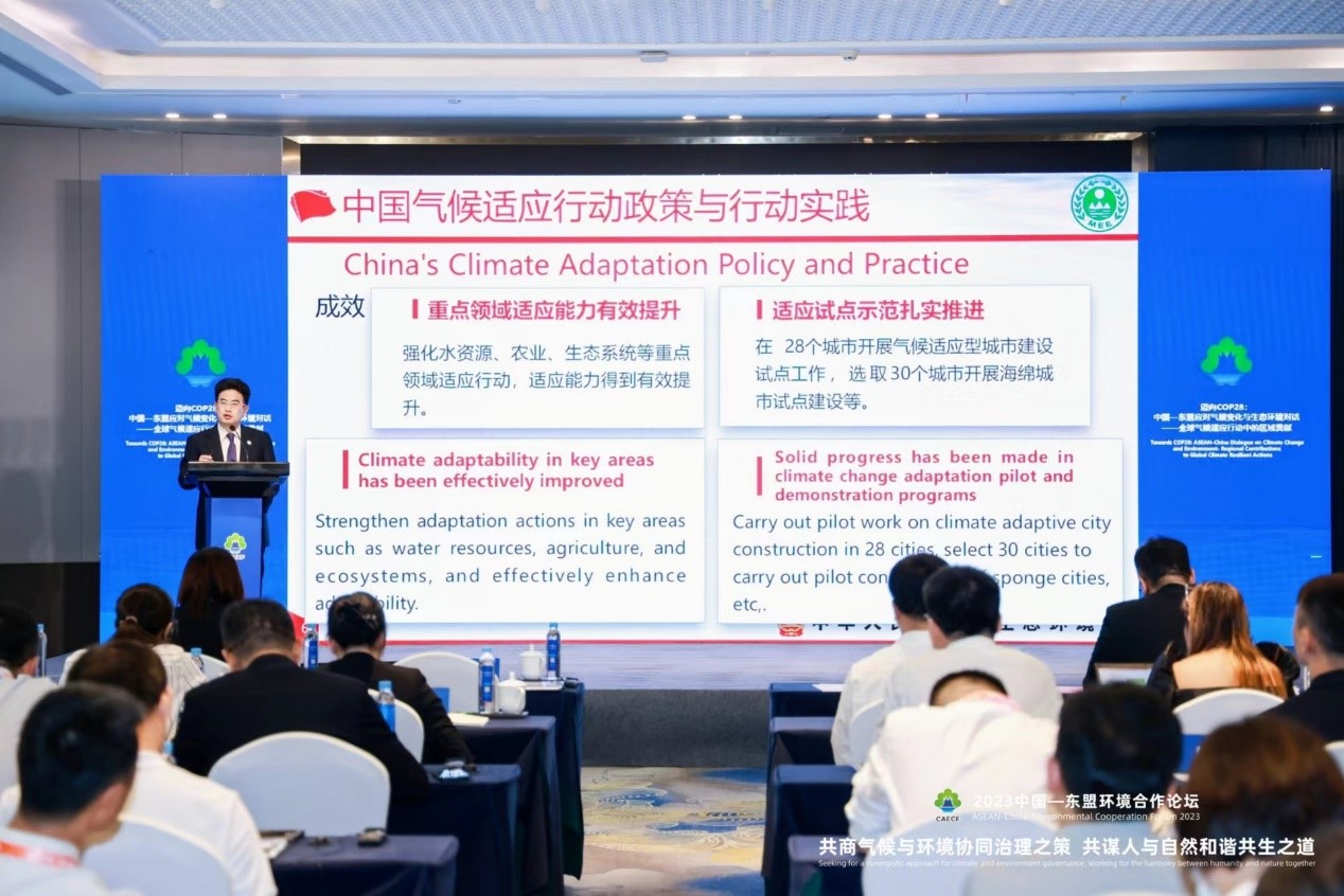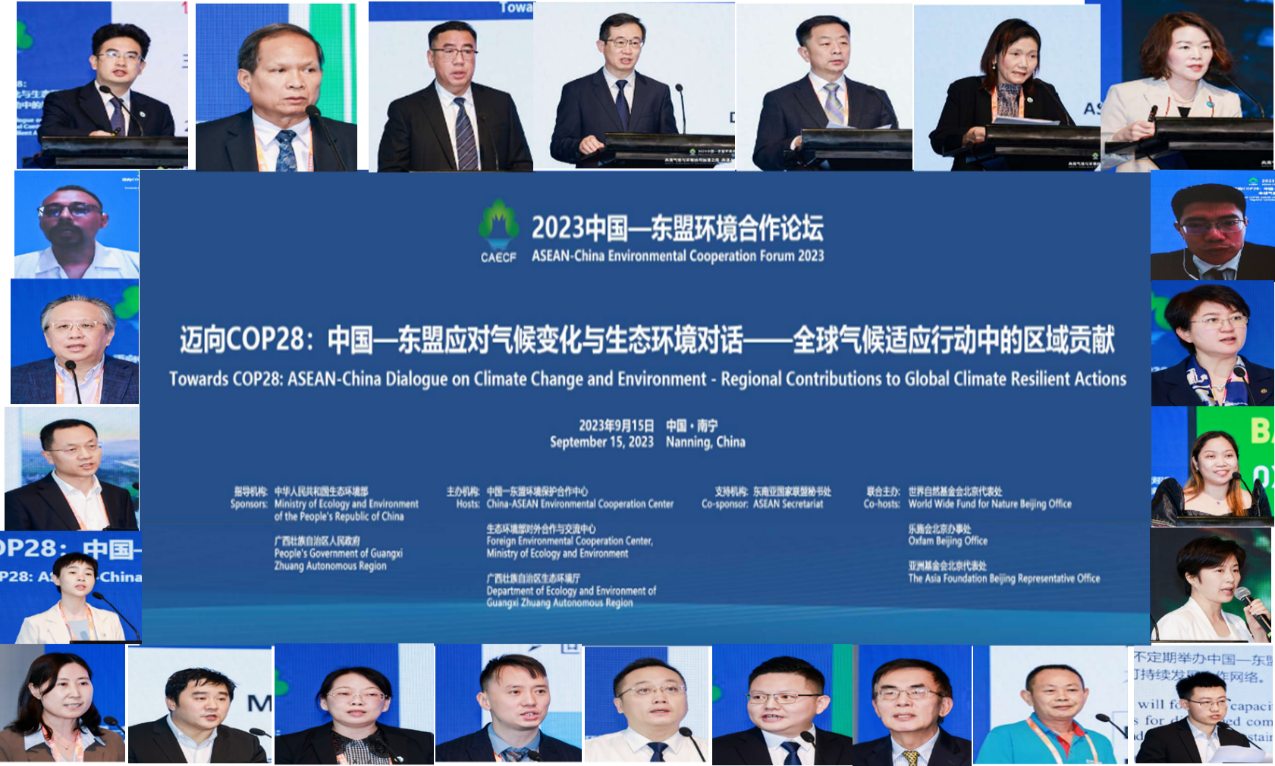 2023年9月15日,作为中国-东盟环境合作论坛平行论坛之一,“迈向COP28:中国-东盟应对气候变化与生态环境对话——全球气候适应行动中的区域贡献”在广西南宁顺利举办。本次活动由中国生态环境部、广西壮族自治区人民政府指导,东南亚国家联盟秘书处支持,中国-东盟环境保护合作中心/生态环境部对外合作与交流中心、广西壮族自治区生态环境厅主办,世界自然基金会北京代表处、乐施会北京办事处、亚洲基金会北京代表处联合主办。来自生态环境部及地方环境部门、东盟国家环境与气候部门、联合国驻华机构、相关国际组织、研究机构以及企业代表参加会议。