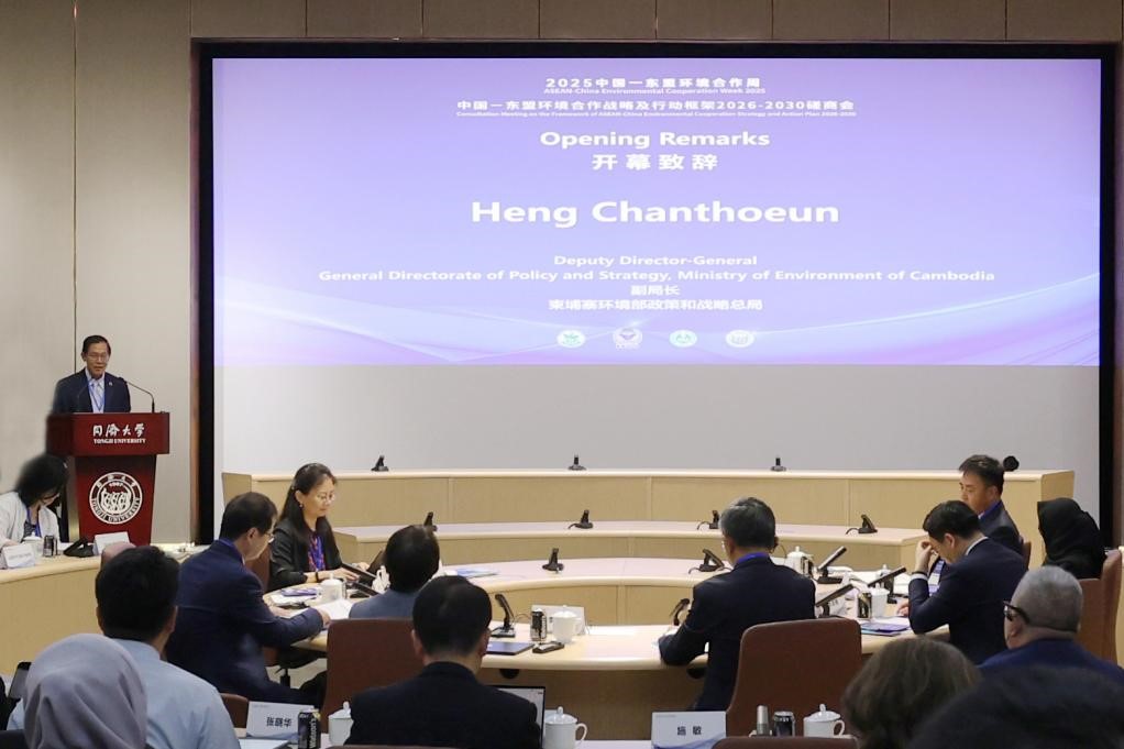 中心副主任李霞、上海市生态环境局巡视员陈伟、柬埔寨环境部政策和战略总局副局长Heng Chanthoeun、中国生态环境部国际合作司调研员付杰、同济大学环境科学与工程学院院长王志伟出席活动并致辞。