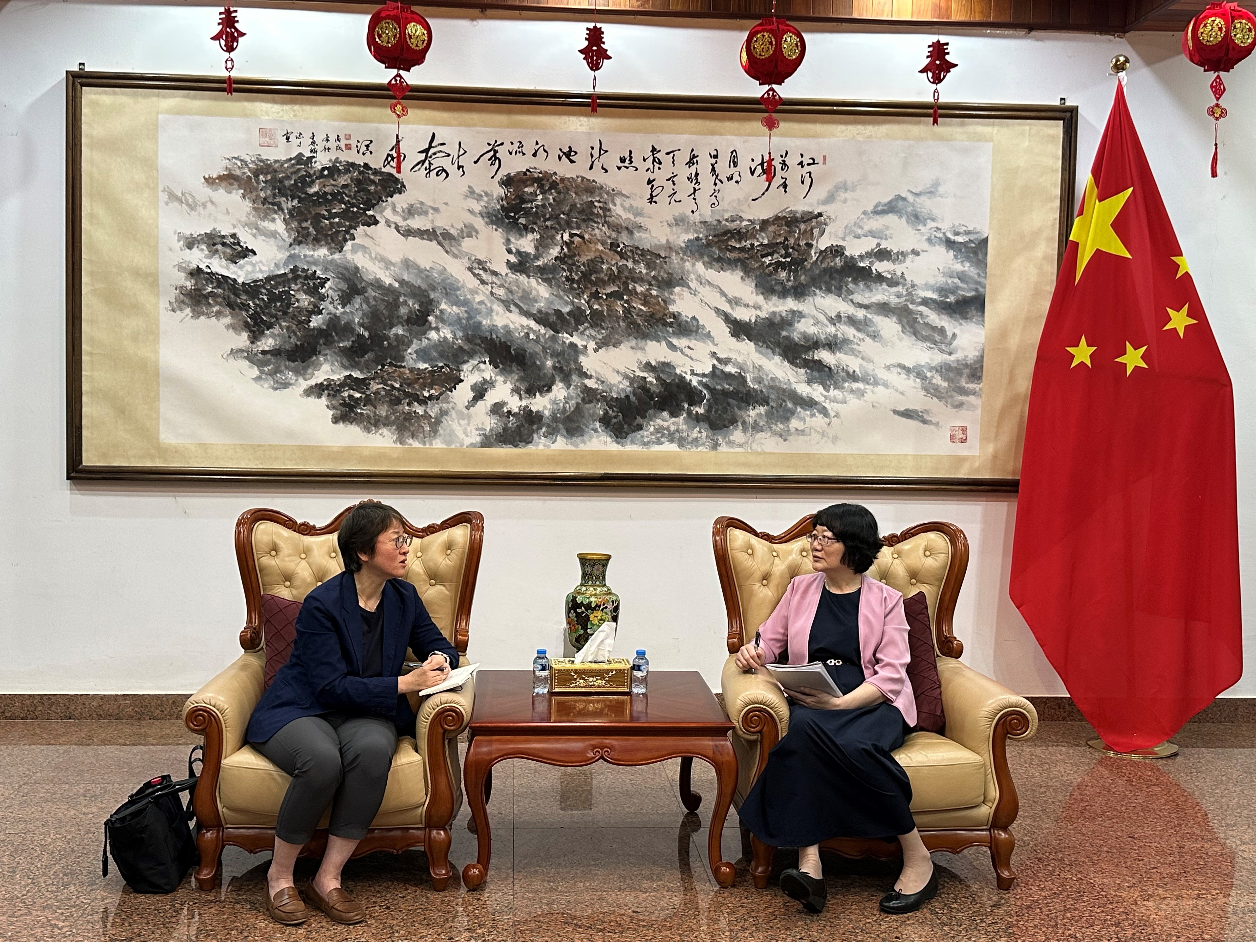 2025年9月4日上午,生态环境部对外合作与交流中心(以下简称“中心”)副主任李霞一行在老挝万象,与中国驻老挝大使馆经济商务参赞李习臻女士举行会谈,双方就推进实施援老挝环境保护规划工程技术援助项目(以下简称“技术援助项目”)深入交换意见。